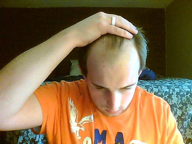 First, before we get to the pictures I want to say that this drug has given me zero, none, zip - I repeat NO side-effects. More than a year after starting treatment, with no lapse in medication, I have not had any of the claimed sexual side-effects that some people complained about. Not only have I not seen any side-effects, I have been getting results. Real results! A year ago today I was praying I would be able to keep my hair another couple of years. Now, I'm excited because I know in the next 2-5 years my hair will be coming back still, and thicker too! This product has given me confidence and I would recommend it anyone who was/is in my situation; balding young. We don't have to let it happen. Enjoy the pictures. I hope this product does for you what it has done for me.
